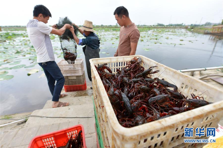 5月23日,在南昌市新建區(qū)象山鎮(zhèn)河林村,當(dāng)?shù)剞r(nóng)戶將捕獲的小龍蝦搬運(yùn)上岸裝箱。近日,江西省南昌市新建區(qū)1.7萬(wàn)畝水域養(yǎng)殖小龍蝦喜獲豐收,當(dāng)?shù)剞r(nóng)戶紛紛將鮮活的小龍蝦捕獲上岸,裝箱外銷(xiāo)。據(jù)了解,近年來(lái),南昌市新建區(qū)發(fā)揮轄區(qū)內(nèi)河道縱橫,水田眾多的優(yōu)勢(shì),支持鼓勵(lì)農(nóng)戶發(fā)展小龍蝦養(yǎng)殖業(yè),為當(dāng)?shù)剞r(nóng)戶開(kāi)辟了一條特色養(yǎng)殖的致富之路。新華社記者彭昭之 攝