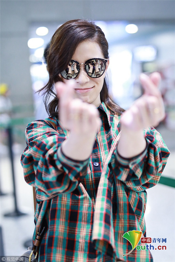2018年9月9日,“嫻妃”佘詩曼從上海機(jī)場飛往北京機(jī)場,她擺“剪刀腿”大方任拍,身穿格紋襯搭配衫燈籠褲,時髦青春衣品超贊!