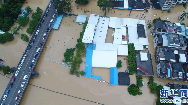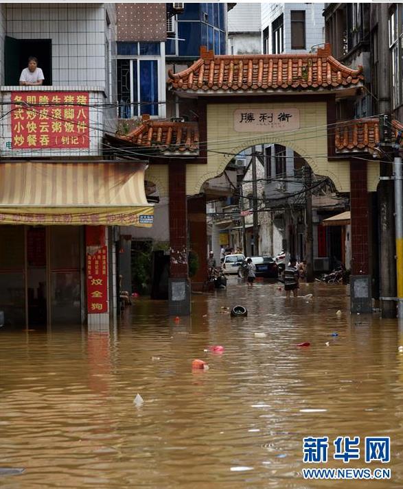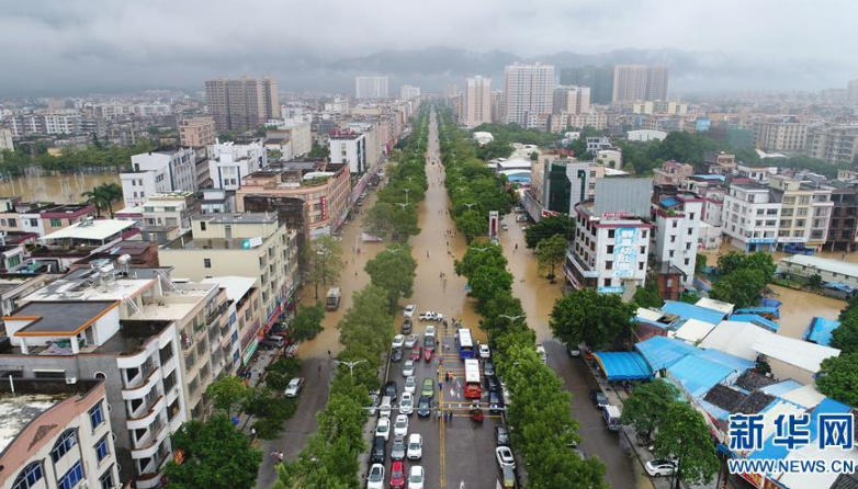 9月18日,陽春市漠陽江畔的街道被洪水淹沒。 新華社記者 周科 攝