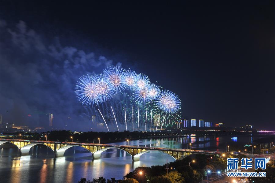 這是9月19日拍攝的長沙湘江橘子洲焰火晚會現(xiàn)場。新華社記者 龍弘濤 攝