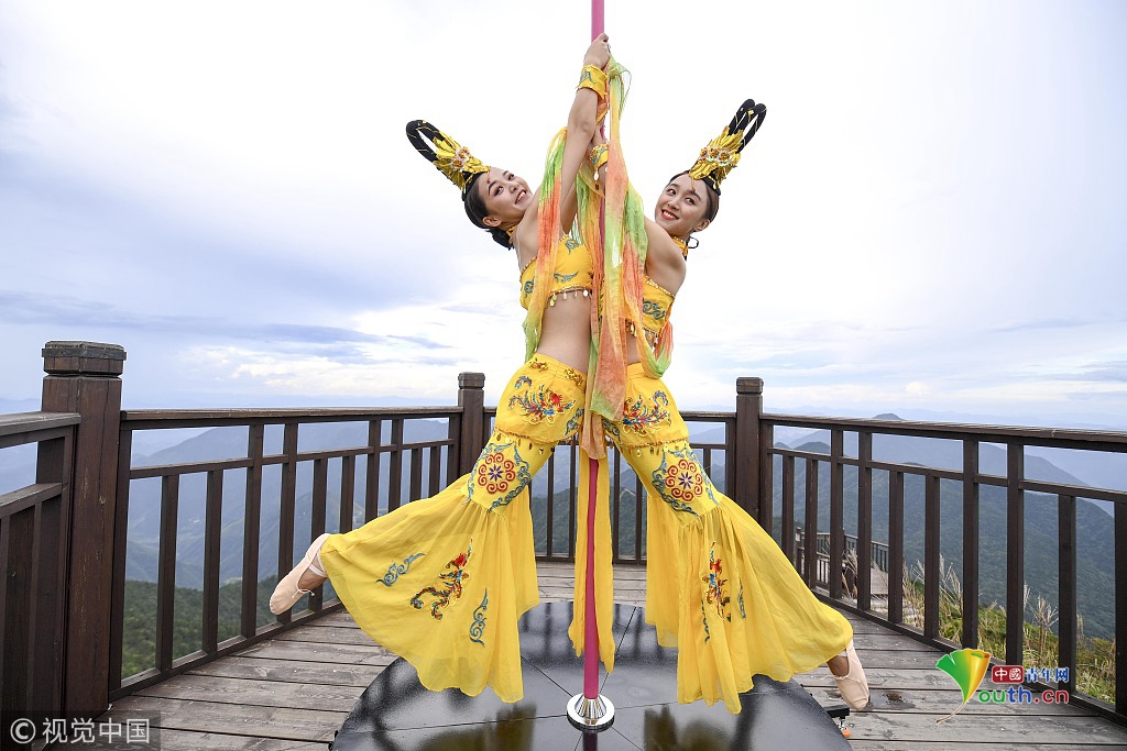 2018年9月20日,中秋節(jié)前夕,位于長三角第一高峰海拔1929米的浙江龍泉山頂,一場柔美的鋼管舞表演吸引了眾人圍觀。