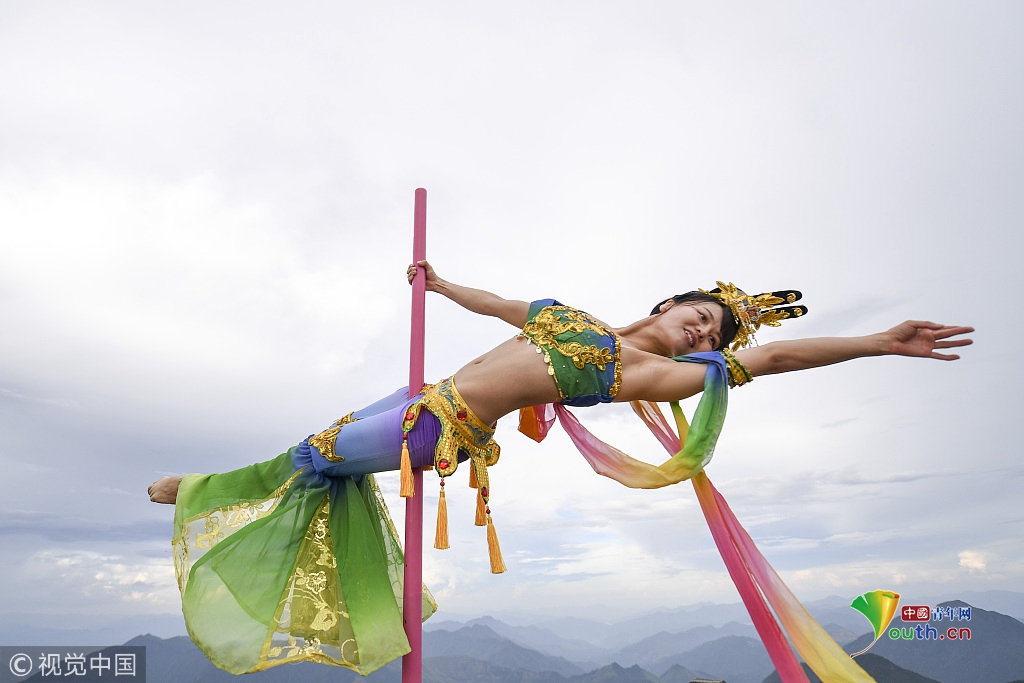 長(zhǎng)三角第一高峰上演高空鋼管舞 舞者演繹“嫦娥奔月”