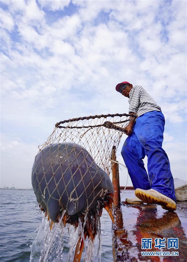 時下正值渤海灣海域海蜇收獲季節(jié),河北省灤南縣漁民開始捕撈養(yǎng)殖的海蜇。據(jù)介紹,今年該縣養(yǎng)殖的海蜇總產(chǎn)量預(yù)計超2000萬斤,產(chǎn)品將銷往京津冀以及上海、廣州、福州等地。
