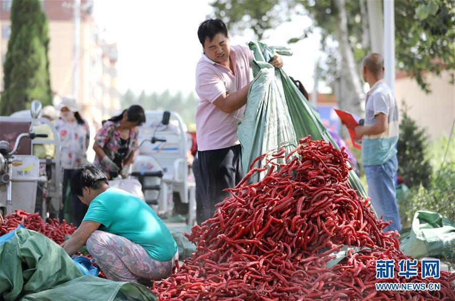 9月16日,阜城縣王集鄉(xiāng)南張莊村農(nóng)民在整理收獲的辣椒。近年來(lái),河北省阜城縣王集鄉(xiāng)在推進(jìn)產(chǎn)業(yè)富民過(guò)程中,積極引導(dǎo)農(nóng)民調(diào)整農(nóng)業(yè)產(chǎn)業(yè)結(jié)構(gòu),按照品種特色化、種植規(guī)?;a(chǎn)銷一體化的“公司+基地+農(nóng)戶”的經(jīng)營(yíng)模式,鼓勵(lì)農(nóng)民發(fā)展特色辣椒種植,推行“訂單種植”模式,開(kāi)辟出了一條農(nóng)民創(chuàng)收新路徑。目前,阜城縣王集鄉(xiāng)辣椒種植面積3100余畝,每畝年收益2500元以上,帶動(dòng)當(dāng)?shù)剞r(nóng)民實(shí)現(xiàn)增收。新華社記者朱旭東攝