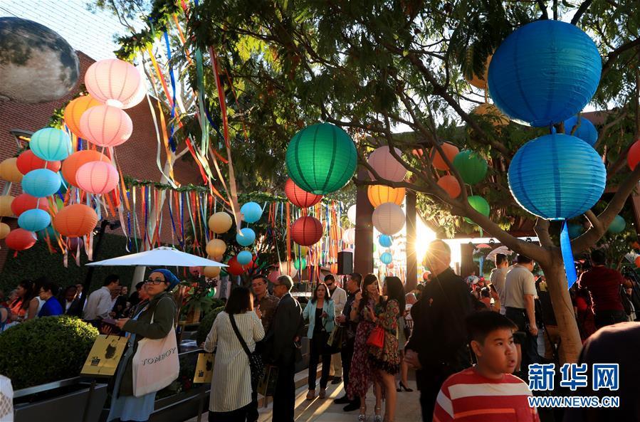 9月23日,在美國(guó)科斯塔梅薩南岸廣場(chǎng),人們參加中秋游園會(huì)。 美國(guó)西部最大購(gòu)物中心南岸廣場(chǎng)23日晚舉辦游園會(huì),慶祝中國(guó)傳統(tǒng)節(jié)日中秋節(jié)。 新華社記者李穎攝