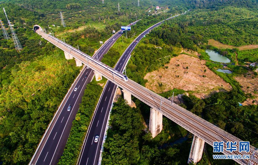 這是2016年10月11日無(wú)人機(jī)拍攝的海南環(huán)島高鐵東線(xiàn)三亞段。新華社記者 楊冠宇 攝
