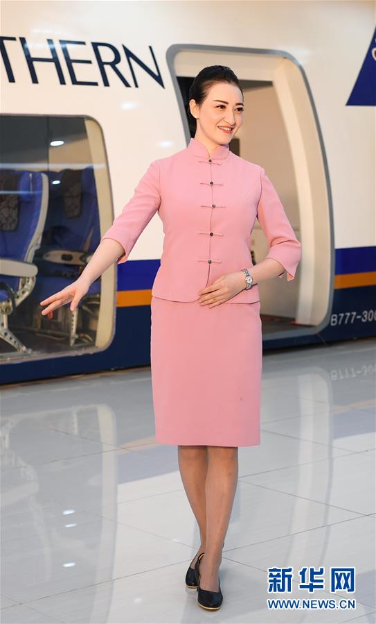 9月26日,中國南方航空公眾開放日活動上,空乘展示制服。 新華社記者 鄧華攝