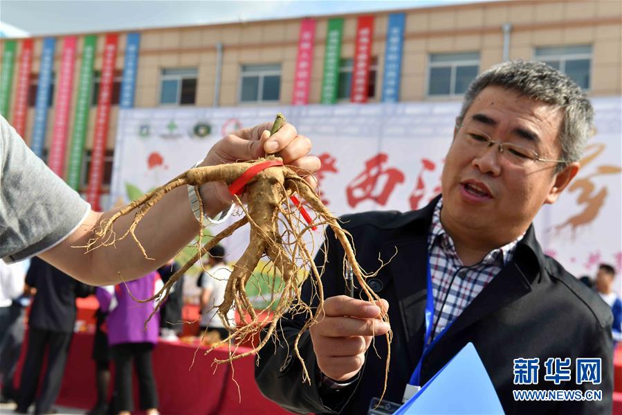 9月26日,在威海市文登區(qū)張家產(chǎn)鎮(zhèn),一名評委在評判西洋參。新華社記者 郭緒雷 攝