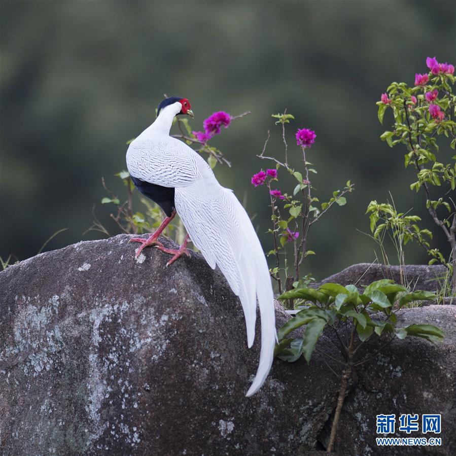 9月27日,在南靖縣鵝仙洞自然保護區(qū)內(nèi),一只白鷴在山石上停留。  新華社記者 梅永存 攝