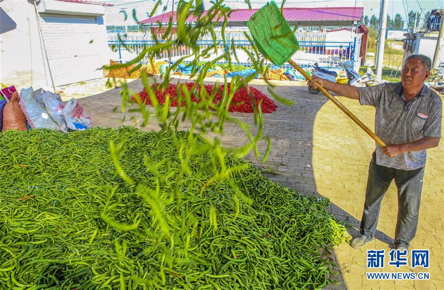 9月28日,饒陽縣留楚鄉(xiāng)影林村的種植戶在翻晾辣椒。 近年來,河北省饒陽縣結合市場需求,積極引進特色品種辣椒種植,開辟出一條農(nóng)民增收致富新路。目前,該縣特色辣椒種植面積1000余畝,種植戶年均增收3000余元。 新華社記者 李曉果攝