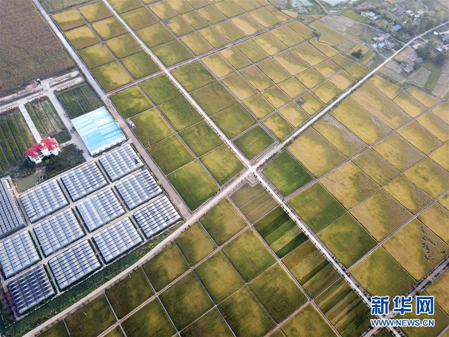 這是小崗村的稻田(9月26日無人機拍攝)。 新華社記者 劉軍喜攝