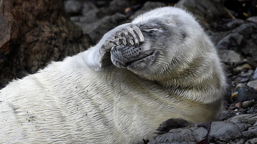 小海豹礁石上慵懶看海 鏡頭前害羞遮 ...