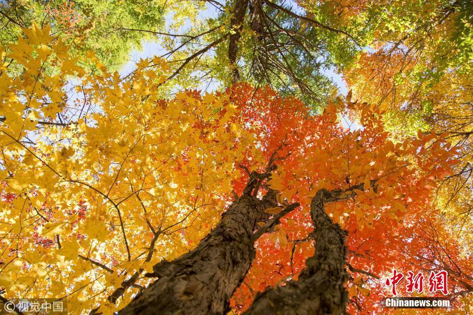 10月5日,吉林省磐石市取柴河鎮(zhèn)西大地村雞爪子溝的楓葉經(jīng)過(guò)秋霜的洗禮進(jìn)入了最佳觀賞期,農(nóng)民在山上賣(mài)土特產(chǎn)。 圖片來(lái)源:視覺(jué)中國(guó)