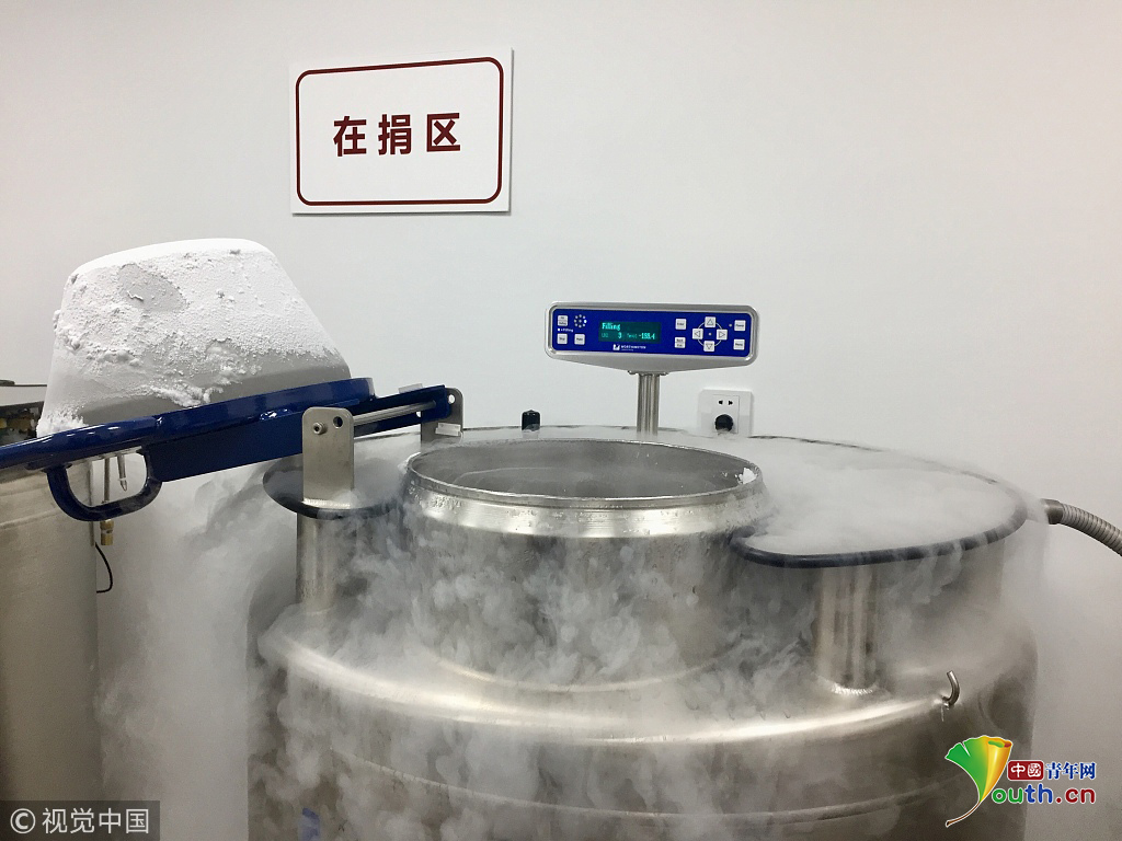 2018年9月20日,上海,實(shí)拍復(fù)旦大學(xué)人類精子庫(kù)。在復(fù)旦大學(xué)人類精子庫(kù),志愿者捐獻(xiàn)出的精液被保存在液氮中。圖片作者:陳斯斯