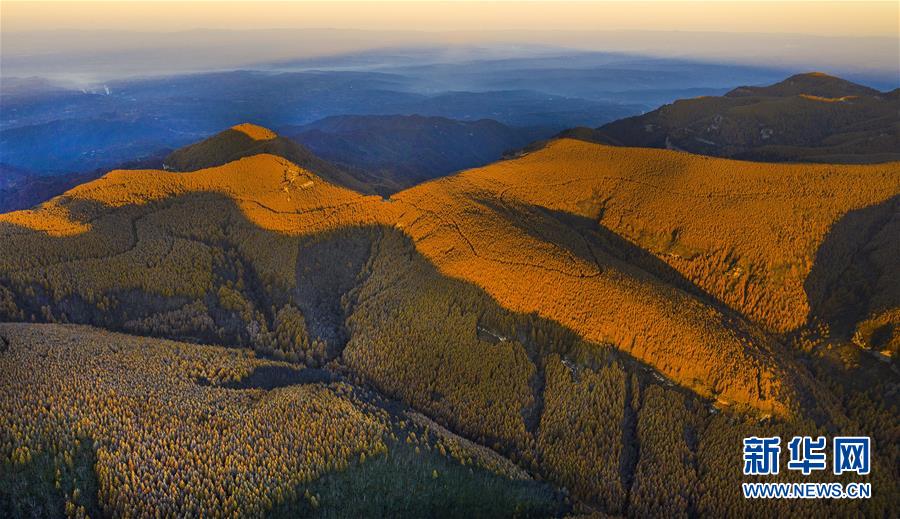 日出時分的好地方林場秋色(10月10日無人機拍攝)。 進入秋季,地處山西省沁源縣的好地方林場變成金黃一片,四面眺望,群山環(huán)繞,綿延起伏,林海蒼茫,宛如一座座金山展現(xiàn)在眼前。 1962年起,好地方林場職工拉開了造林的序幕,攻克落葉松山地育苗等難關(guān),連續(xù)20年,共營造落葉松人工林29000余畝。如今的好地方林場森林總覆蓋率達98%以上,成為一處“林茂草奇花艷麗”的天然氧吧。 目前沁源全縣森林面積220萬畝,天然牧坡120萬畝,森林覆蓋率達56.7%,居山西省第一,是全國天然林保護重點縣、全國“油松之鄉(xiāng)”。 新華社記者陶明攝