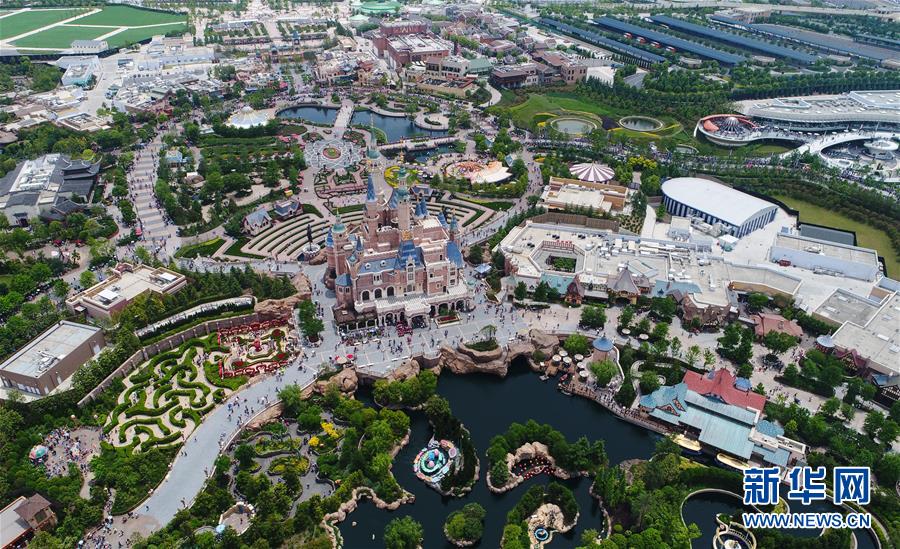 位于上海浦東的迪士尼樂園(2017年5月19日無人機(jī)拍攝)。 新華社記者 丁汀 攝
