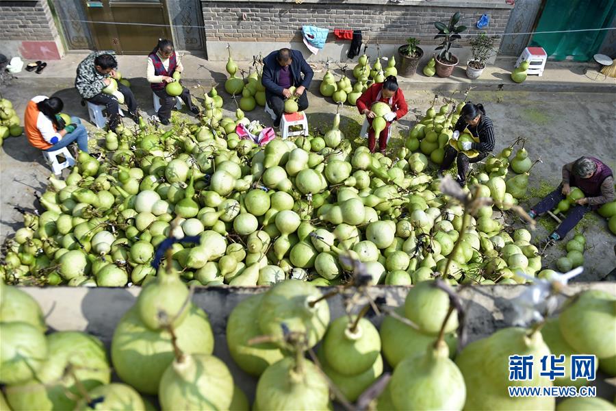 9月27日,山西省安澤縣和川鎮(zhèn)孔旺村的村民將葫蘆去皮。近日,山西省安澤縣和川鎮(zhèn)孔旺村種植的葫蘆喜獲豐收,村民們忙著將摘下的葫蘆去皮晾干。孔旺村于2016年成立葫蘆種植合作社,種植、采摘、加工等環(huán)節(jié)全部由貧困戶負責(zé),為貧困戶拓寬增收渠道。新華社記者 曹陽 攝