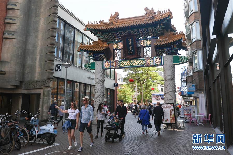 10月13日,在荷蘭海牙,人們經過唐人街的牌坊。