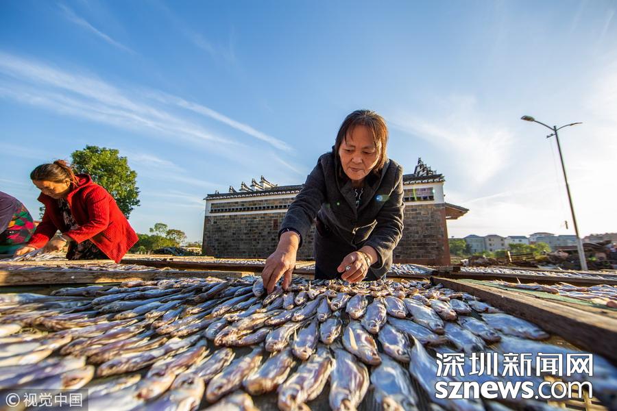 深圳新聞網訊 連日來,秋風颯爽,艷陽高照,當?shù)貪O村迎來豐收季,漁民們在鄱陽湖畔的漁港岸邊和屋前屋后晾曬魚蝦,忙的不亦樂乎。
