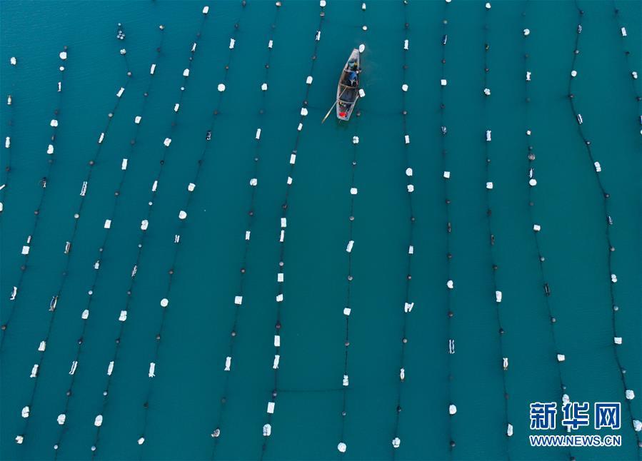 8月18日,南麂島海域的“海上牧場”養(yǎng)殖區(qū)內(nèi),漁民準備進行養(yǎng)殖作業(yè)(無人機拍攝)。進入8月,浙江省溫州市平陽縣南麂鎮(zhèn)海域上大片的大黃魚、貽貝等特色海產(chǎn)品養(yǎng)殖區(qū)域迎來豐收季節(jié),養(yǎng)殖戶們駕駛漁船在養(yǎng)殖區(qū)海域進行打撈收獲,在碧海藍天下構成了一幅“海上牧場”的美麗豐收景象。近年來,南麂鎮(zhèn)政府引導漁民養(yǎng)殖戶充分發(fā)揮“靠海吃?!钡馁Y源優(yōu)勢,大力發(fā)展海洋養(yǎng)殖經(jīng)濟和海島旅游經(jīng)濟,實現(xiàn)了南麂由“生態(tài)美”向“產(chǎn)業(yè)美”,“產(chǎn)業(yè)美”向“經(jīng)濟美”的轉(zhuǎn)變。同時該鎮(zhèn)堅持以大黃魚、貽貝等為特色產(chǎn)業(yè)支撐,精準發(fā)展高效海洋養(yǎng)殖業(yè),重點培養(yǎng)一批新型職業(yè)漁民,依靠專業(yè)技術支持,實現(xiàn)深海仿生養(yǎng)殖,讓好生態(tài)造就好品質(zhì),重點打造南麂養(yǎng)殖品牌,組建營銷網(wǎng)絡,拓展特色海產(chǎn)品市場。新華社記者 徐昱攝