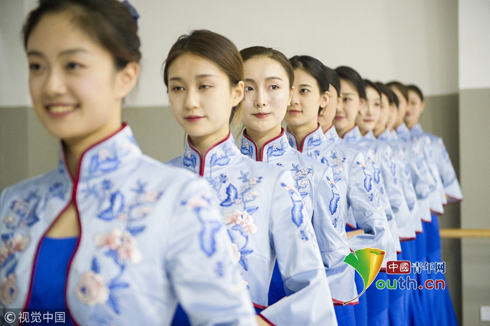 2018年10月15日,杭州,第五屆世界互聯(lián)網(wǎng)大會(huì)召開在即,來自浙江傳媒學(xué)院的禮儀志愿者們正在進(jìn)行緊張有序的集中訓(xùn)練。圖片作者:浙江日?qǐng)?bào) 馮賀/視覺中國