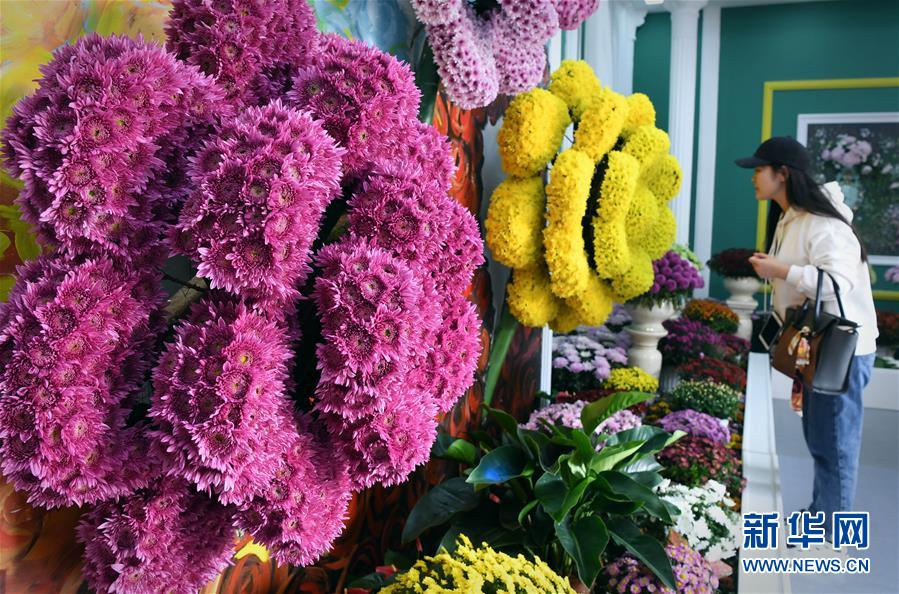 10月17日,游客在開封龍亭公園欣賞菊花。重陽時節(jié),各色菊花競相綻放,把古都開封裝點得分外秀美,吸引眾多游客前來觀賞游玩。 新華社記者 李安 攝