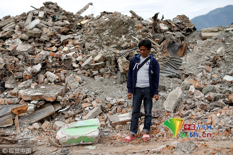 當(dāng)?shù)貢r間2018年10月11日,印尼帕盧,43歲的農(nóng)民Ahmad在廢墟旁邊,這里曾經(jīng)是他的家。他希望能找到妻子和兩個女兒的遺體。他的三女兒被發(fā)現(xiàn)時受了重傷,現(xiàn)在正在醫(yī)院接受治療。