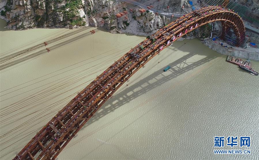 9月28日無(wú)人機(jī)拍攝的川藏鐵路拉林段重點(diǎn)標(biāo)志性工程藏木特大橋。 當(dāng)日,隨著最后一節(jié)鋼管拱的對(duì)位和鎖定完畢,川藏鐵路拉林段藏木特大橋成功合龍,標(biāo)志著大橋主體結(jié)構(gòu)施工取得了關(guān)鍵性勝利。藏木特大橋由中國(guó)中鐵廣州局集團(tuán)承建,拱高112米,橋橫跨雅魯藏布江峽谷,水深66米。 新華社記者普布扎西攝