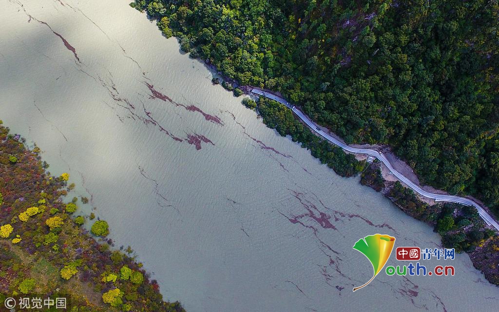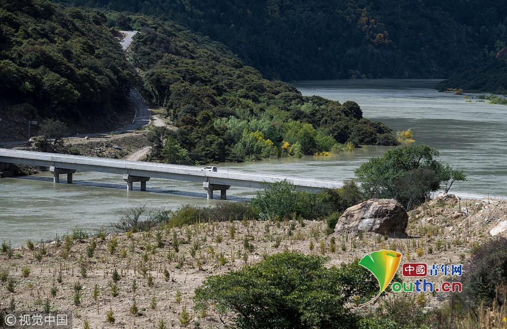 空中俯瞰通往加拉村已淹沒(méi)的公路(10月18日攝)。  新華社記者 普布扎西攝