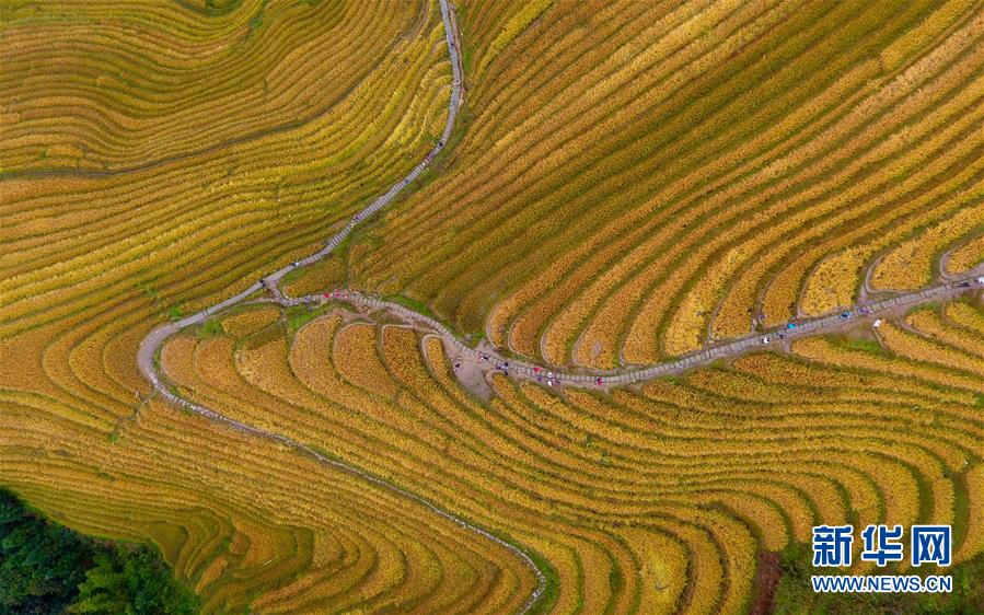 這是10月16日無人機拍攝的龍脊梯田秋色。金秋時節(jié),廣西龍勝各族自治縣龍脊梯田美如畫卷。   新華社記者 黃孝邦 攝