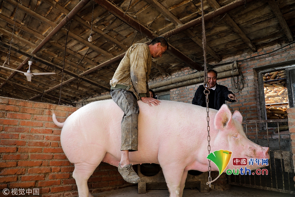 2018年10月16日,遼寧丹東,900斤重的大豬,堪稱豬中巨無霸,豈不是炙手可熱的網(wǎng)紅一枚?大小老板還不得帶上銀子蜂擁而至?然而,今年不行了,受遼寧多地豬瘟疫情影響,900斤大豬無人問津。本想靠著這頭巨無霸大豬刷爆朋友圈甚至賣個大價錢的養(yǎng)豬人張先生,現(xiàn)在非常擔(dān)心一頭好豬爛在手上。10月16日,遼寧丹東。當(dāng)著來圍觀的鄉(xiāng)親的面,養(yǎng)豬人張先生小心翼翼地騎上了豬背,希望用這樣的造型求關(guān)注。
