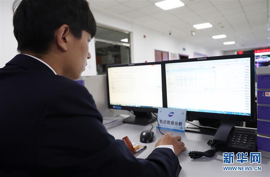 10月17日,郎海鵬在上海高鐵維修段調度指揮中心處理和分析軌檢小車采集到的數(shù)據(jù)。新華社記者 方喆 攝