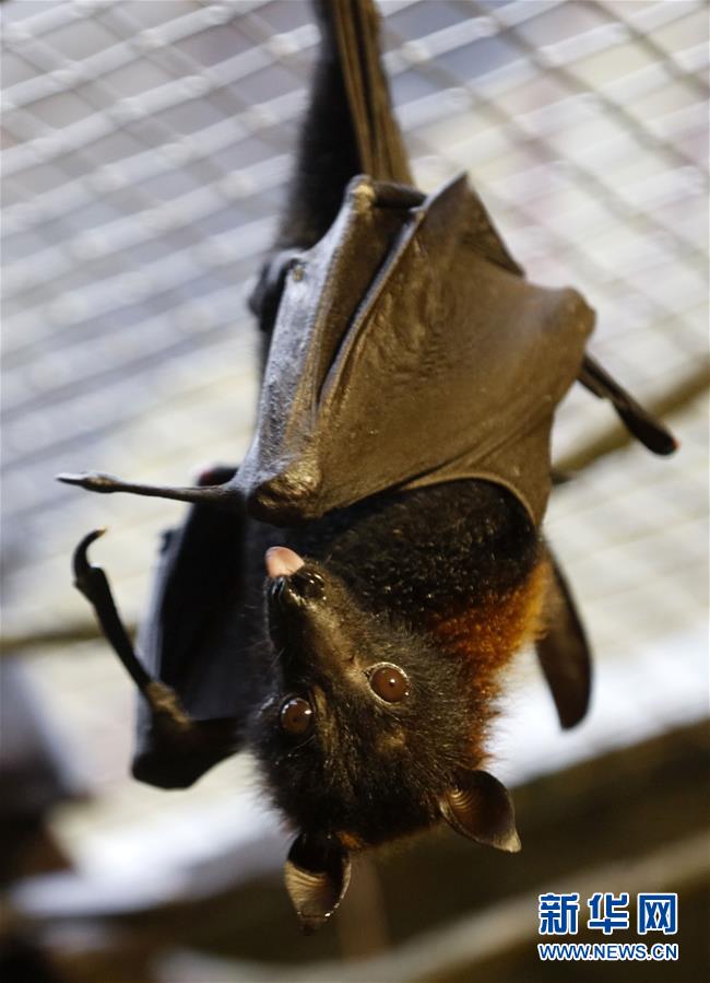 10月18日在廣州長隆野生動物世界拍攝的馬來大狐蝠。 當日,馬來大狐蝠在廣州長隆野生動物世界首次展出。馬來大狐蝠體長20至25厘米,翼幅最大近兩米,主要分布在印度尼西亞與馬來西亞等地。 新華社記者 黃國保 攝