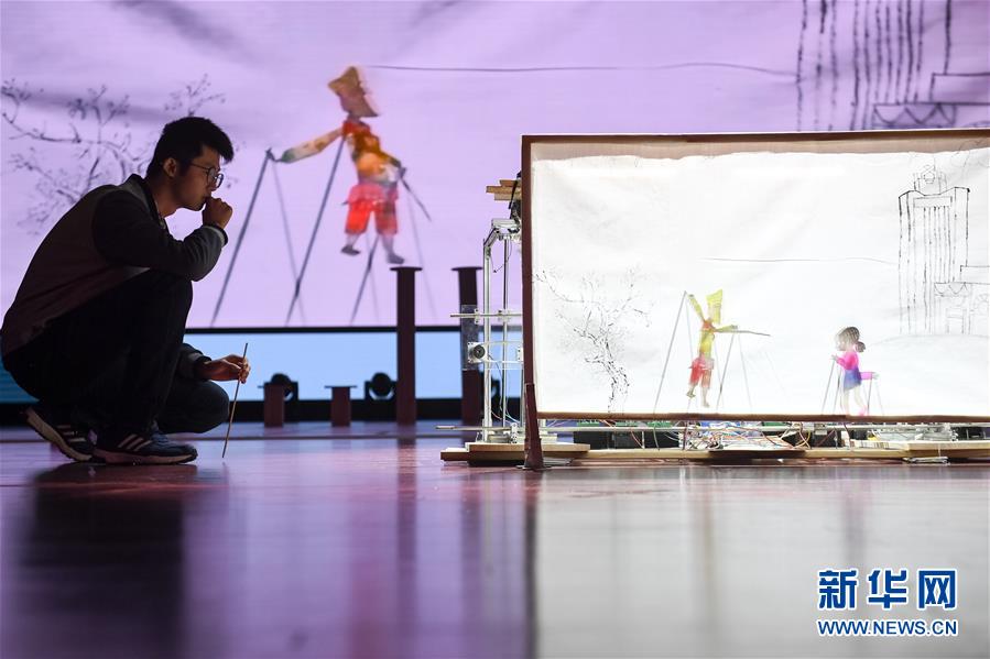 10月21日,在位于安徽合肥的中國科學技術(shù)大學,“人五成影”隊帶著皮影戲機器人參加比賽。新華社記者張端攝