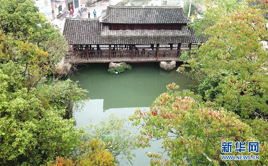 有著數(shù)百年歷史的廣西富川瑤族自治縣朝東鎮(zhèn)東水村風(fēng)雨橋(10月19日無人機(jī)拍攝)。 新華社記者 周華 攝