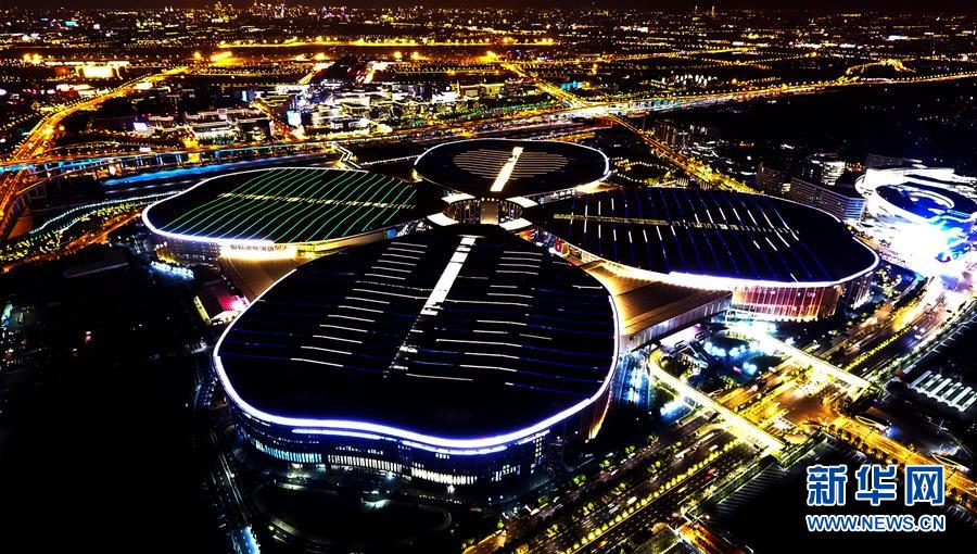 夜幕下的國家會展中心 “四葉草”燈光璀璨