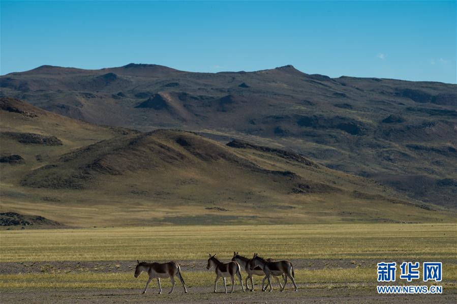 在西藏阿里地區(qū)境內拍攝的國家一級保護動物藏野驢(9月8日攝)。 阿里地處西藏西部,平均海拔4500米以上,面積30多萬平方公里,羌塘國家級自然保護區(qū)幾乎涵蓋整個阿里地區(qū),是眾多野生動物生活的樂園。 新華社記者 普布扎西 攝