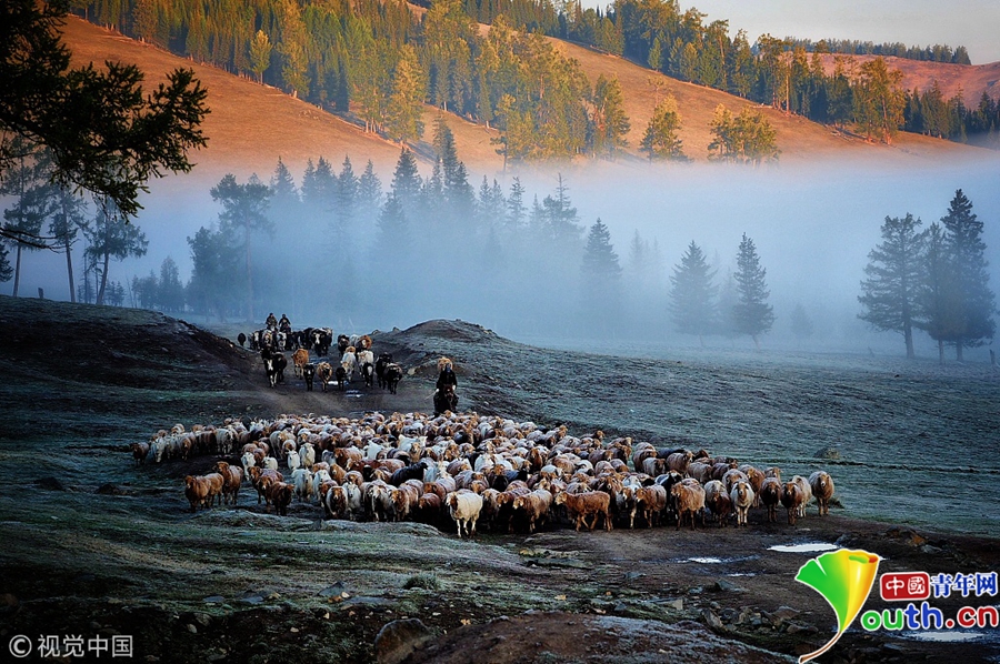新疆阿勒泰天氣轉冷 牧民收拾行囊準備遷徙