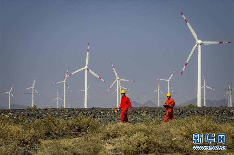 在新疆烏魯木齊達坂城風力發(fā)電場,工作人員馬木爾別克(左)和尤志強查看風力發(fā)電設(shè)備(2018年9月18日攝)。今年以來,新疆穩(wěn)步推進新能源參與“疆電外送”、擴大與燃煤自備電廠調(diào)峰替代交易等多種電力交易方式,著力破解“綠色電力”上網(wǎng)難題,新能源發(fā)電量同比增加近13個百分點,而棄電量和棄電比實現(xiàn)“雙降”,綠色發(fā)展理念進一步落實。 新疆是我國重要的能源供應(yīng)和儲備基地,風能、太陽能儲量豐富。近年來,新疆新能源裝機總量突破2700萬千瓦,規(guī)模和占比均居全國前列。新華社記者 趙戈 攝