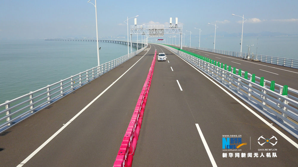 圖為新華網(wǎng)無人機(jī)隊(duì)航拍港珠澳大橋。新華網(wǎng) 黃璐璐 攝