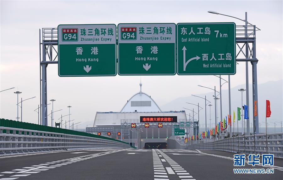 港珠澳大橋西人工島隧道口(2018年10月20日攝)。 金秋十月,伶仃洋上海天一色、潮聲陣陣,依傍著這片中國南海水域的城市群迎來深具意義的一天。 10月23日上午,港珠澳大橋開通儀式在廣東珠海舉行,中共中央總書記、國家主席、中央軍委主席習(xí)近平出席儀式,宣布大橋正式開通。 碧波之上,一橋飛架香港、澳門、珠海三地,以氣貫長虹的“中國跨度”,飛越滄海百年的歷史風(fēng)云,展現(xiàn)當(dāng)代中國的雄健風(fēng)采。 新華社記者梁旭攝