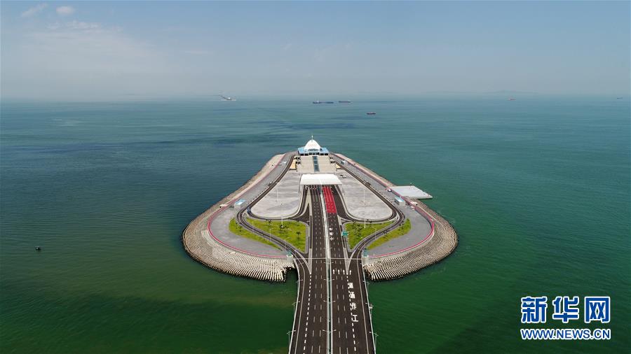 從港珠澳大橋東人工島遙望西人工島,中間是海底隧道(2018年7月11日無人機(jī)拍攝)。 金秋十月,伶仃洋上海天一色、潮聲陣陣,依傍著這片中國南海水域的城市群迎來深具意義的一天。 10月23日上午,港珠澳大橋開通儀式在廣東珠海舉行,中共中央總書記、國家主席、中央軍委主席習(xí)近平出席儀式,宣布大橋正式開通。 碧波之上,一橋飛架香港、澳門、珠海三地,以氣貫長虹的“中國跨度”,飛越滄海百年的歷史風(fēng)云,展現(xiàn)當(dāng)代中國的雄健風(fēng)采。 新華社記者梁旭攝