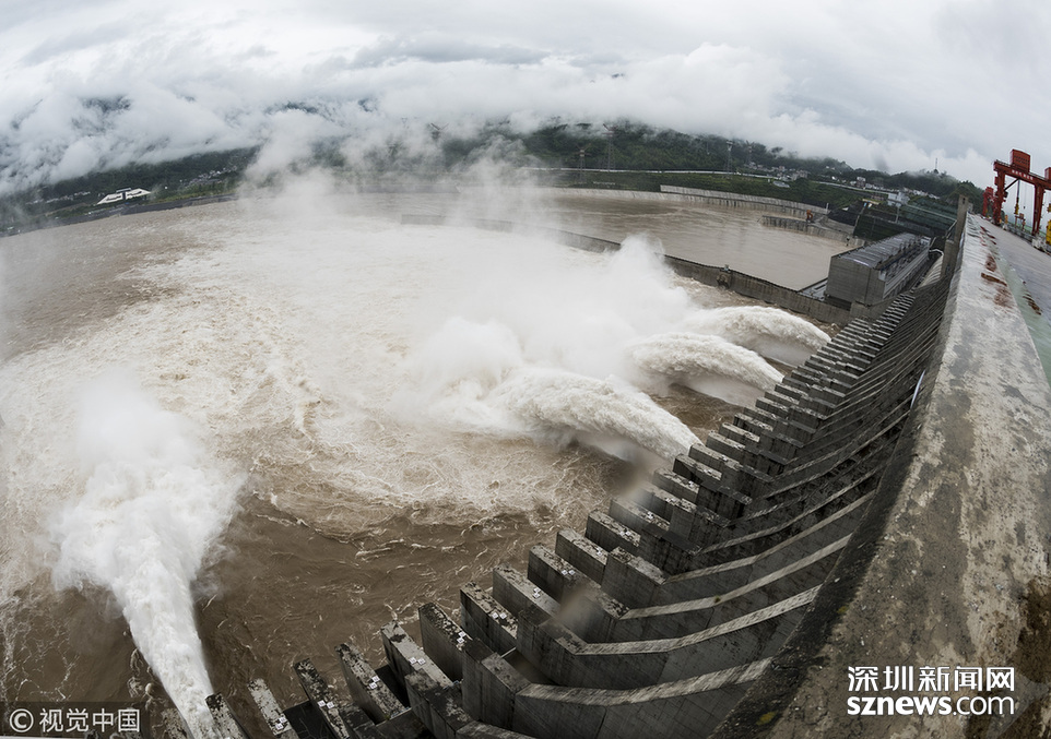 深圳新聞網(wǎng)訊 2018年7月5日,三峽大壩今年首次開閘泄洪。當(dāng)天,三峽大壩開啟5個泄洪孔下泄洪水,至中午12點左右減至2個。