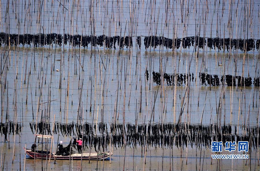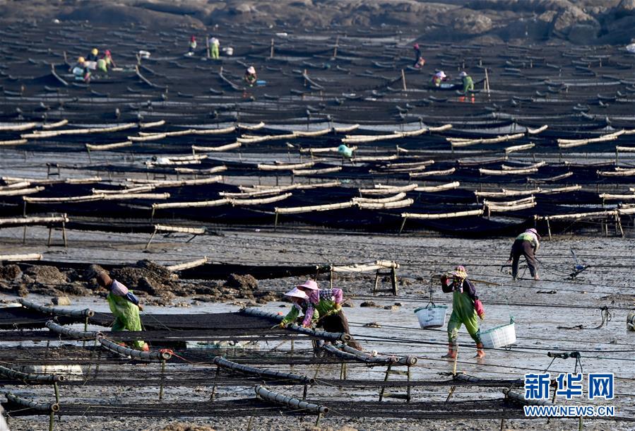 10月24日,福建莆田蔣山村村民在收獲紫菜?! ⌒氯A社記者張國(guó)俊 攝