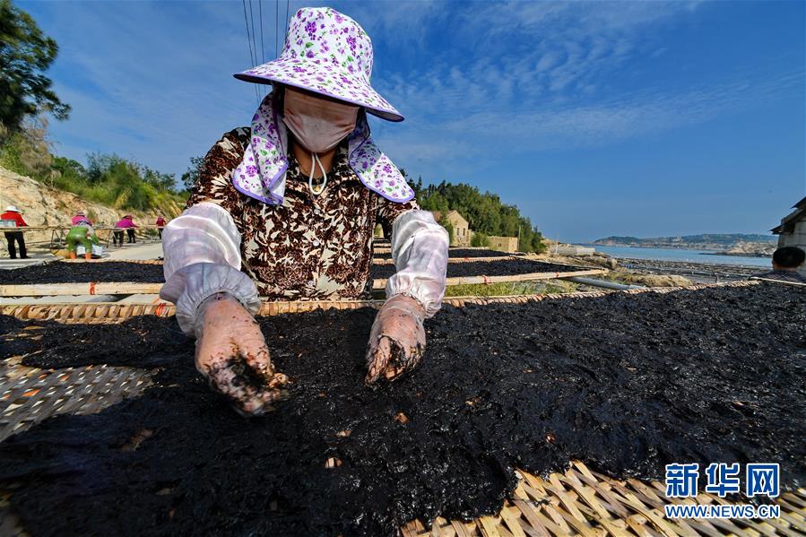 10月24日,福建莆田蔣山村村民在曬紫菜。 新華社記者張國(guó)俊 攝