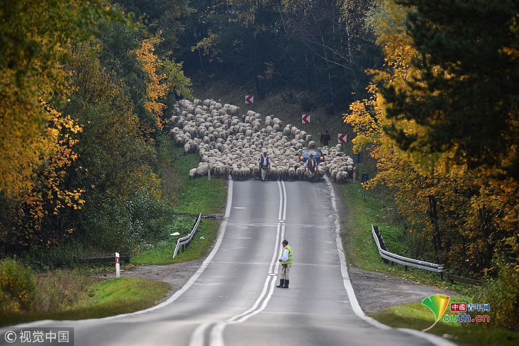 車輛不得不停下來,仿佛被無窮無盡的羊群吞沒了,場(chǎng)面非常壯觀。