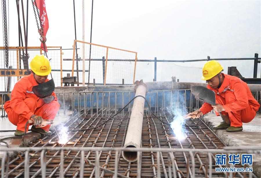 10月23日,在重慶涪陵,施工人員在渝懷鐵路涪秀二線重點(diǎn)工程——烏江右線大橋主跨合龍現(xiàn)場作業(yè)。 當(dāng)日,由中鐵四局承建的渝懷鐵路涪秀二線重點(diǎn)工程——烏江右線大橋主跨成功合龍,標(biāo)志著大橋主體工程全部順利結(jié)束。烏江右線大橋項(xiàng)目全程460.1米,主跨192米,跨越烏江和319國道。在兩年多的建設(shè)過程中,施工人員攻克了“不等高墩”“不對(duì)稱邊跨”“邊跨入隧”等多個(gè)技術(shù)難題。 新華社記者王全超攝