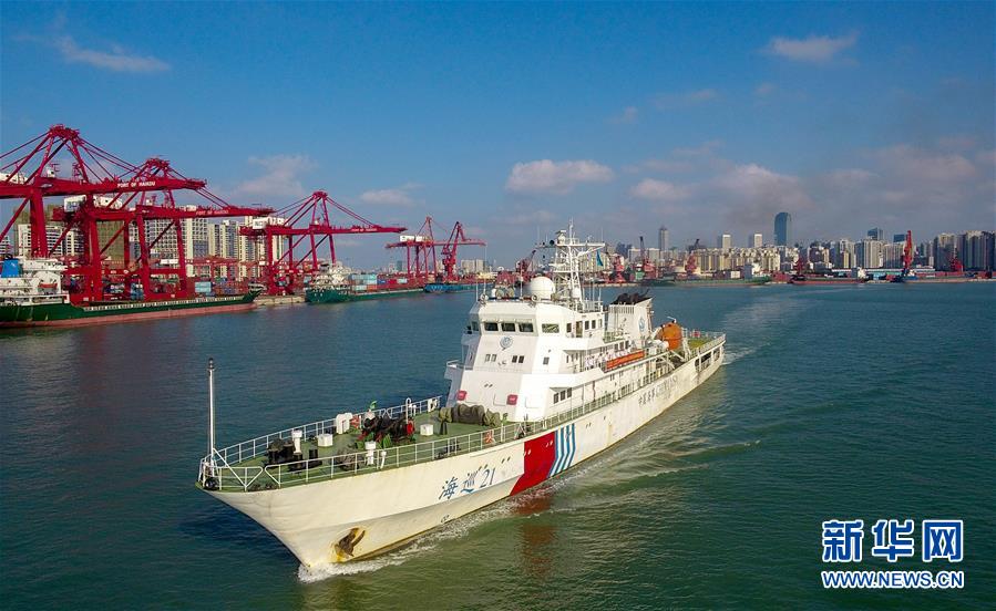 11月3日,“海巡21”輪準(zhǔn)備出發(fā)。當(dāng)日,隨著“海巡21”輪緩緩駛離??诤J卤O(jiān)管基地碼頭,由瓊桂粵海事部門共同開展的瓊州海峽、北部灣及環(huán)海南島水域跨轄區(qū)聯(lián)合巡航執(zhí)法活動揭開序幕。新華社記者楊冠宇攝