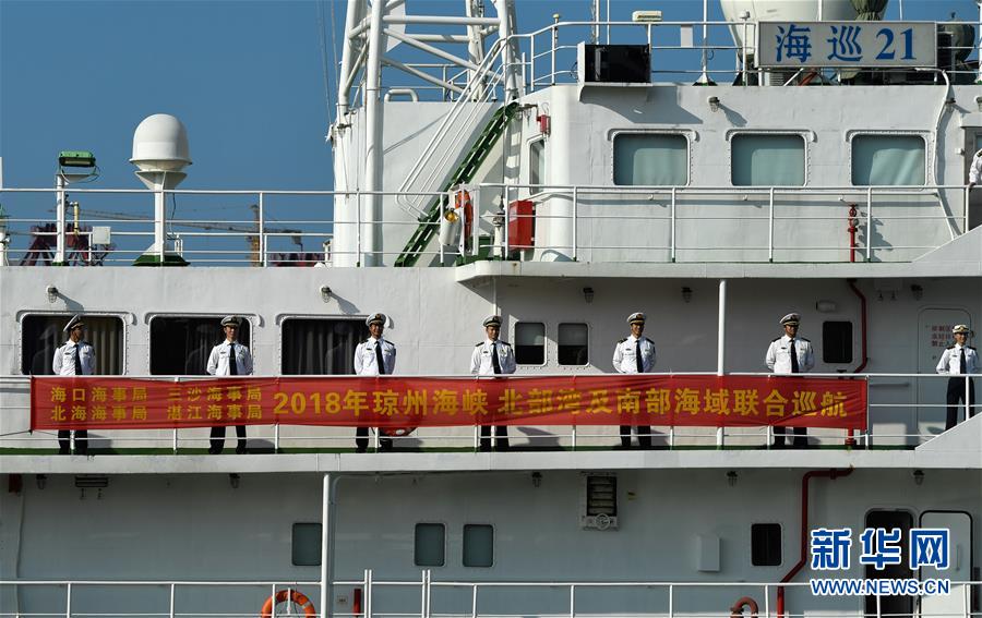 11月3日,“海巡21”輪駛出港口(無人機拍攝)。當(dāng)日,隨著“海巡21”輪緩緩駛離海口海事監(jiān)管基地碼頭,由瓊桂粵海事部門共同開展的瓊州海峽、北部灣及環(huán)海南島水域跨轄區(qū)聯(lián)合巡航執(zhí)法活動揭開序幕。新華社記者楊冠宇攝
