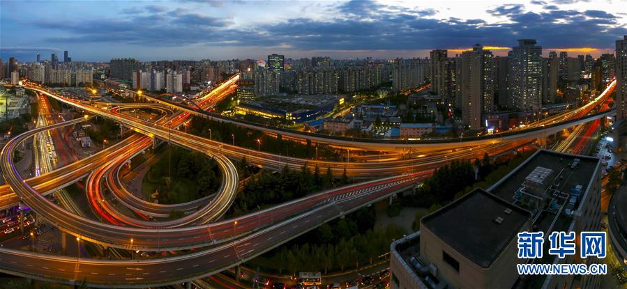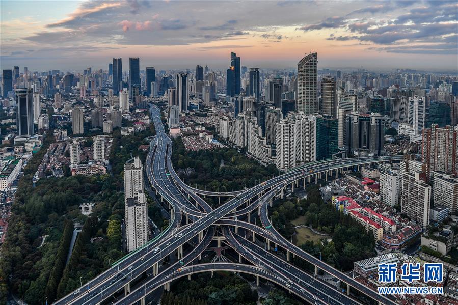 這是11月2日拍攝的上海延安高架路與南北高架路交匯處的立交橋。 首屆中國國際進(jìn)口博覽會即將在上海開幕。美麗的上海張開懷抱,迎接八方來客。 新華社記者 李鑫 攝